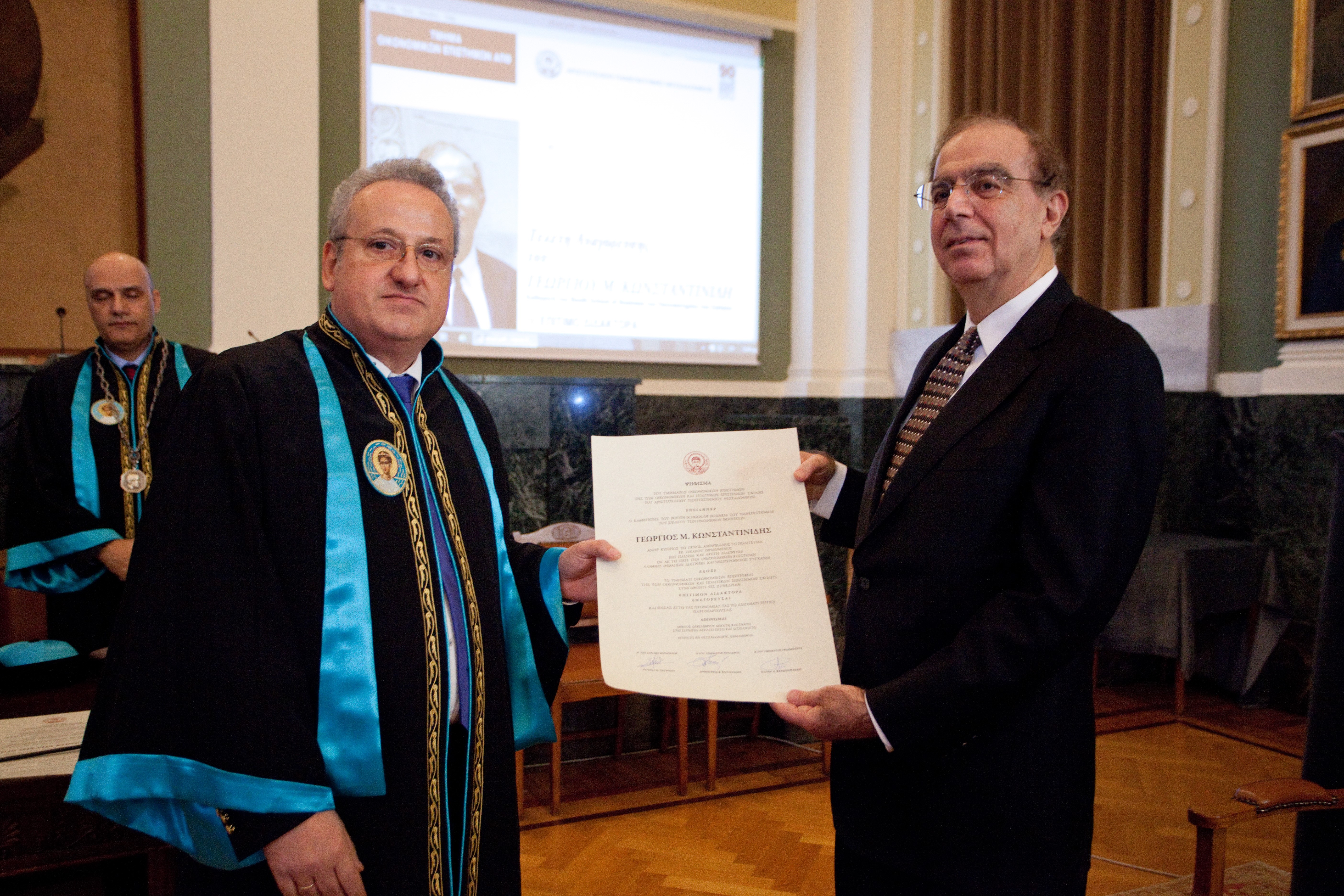 Αναγόρευση σε Επίτιμο Διδάκτορα του Τμήματος Οικονομικών Επιστημών του ΑΠΘ, του καθηγητή κ. Γεώργιου Κωνσταντινίδη